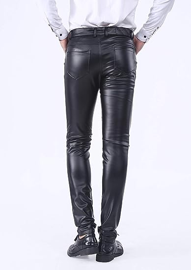 Men's Business Slim Fit Five Pockets Faux Leather Pants Jeans